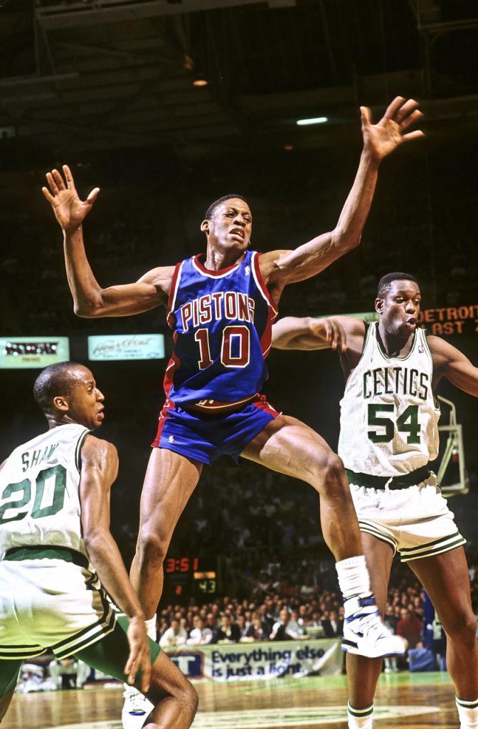 1992年3月4日,活塞队110-107战胜步行者。比赛中活塞悍将罗德曼疯狂抢下34个篮板,创了个人生涯纪录,同时也创下了球队的纪录。