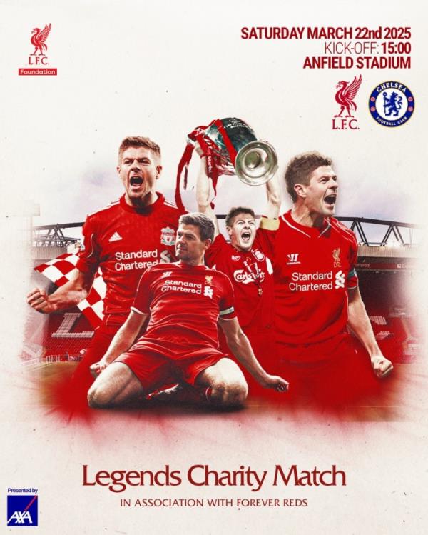 本场比赛将于3月22日周六于安菲尔德进行,比赛所得的所有收入将捐给利物浦足球俱乐部基金会,并支持包括Forever Reds、切尔西俱乐部基金会和切尔西球员信托基金在内的受益人。